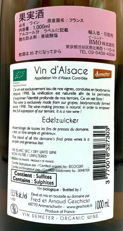 アルザスでは伝統的な1Lボトルに、彼らの全てがパンパンに詰まっている!!
