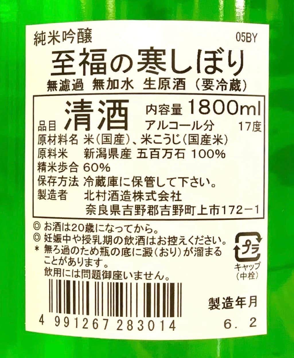 ⚪︎至福の寒しぼり 純米吟醸 無濾過生原酒