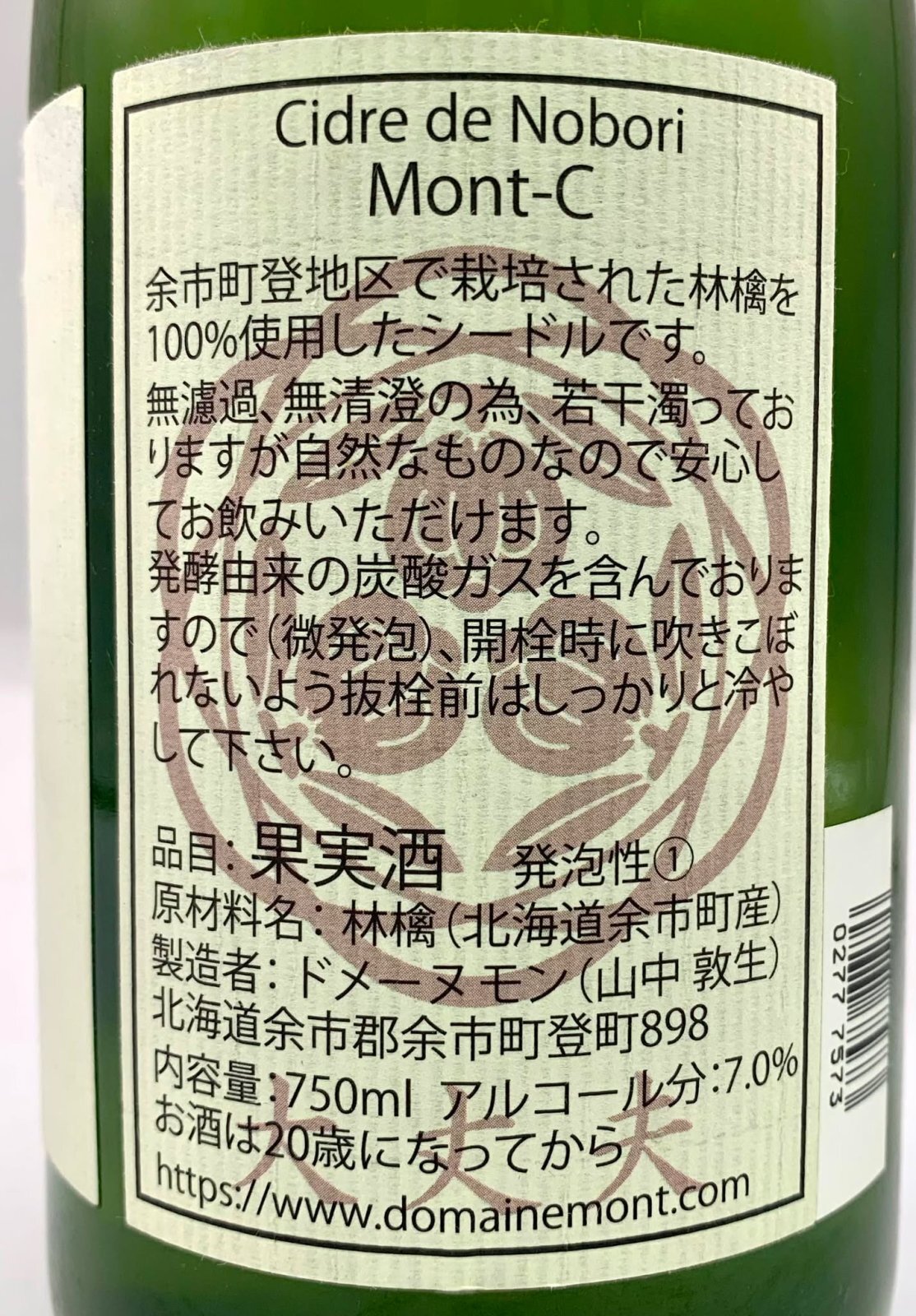 今回の原料となります林檎は、やはり同じ余市登地区にございます「中井観光農園」様と、ドメーヌモン様の畑の目の前に広がる約4haのりんご園を持たれる「森farm」様が育てられたリンゴを100%(こうりん25%、ジョナゴールド15%、ふじ10%、ブラムリー10%、他40%「しゅうよう、北斗、王林、ハックナイン、ひめかみ、シナノスイート)」を使用され、野生酵母にて自然発酵、亜硫酸は発酵から瓶詰めまで一切使用されてません。