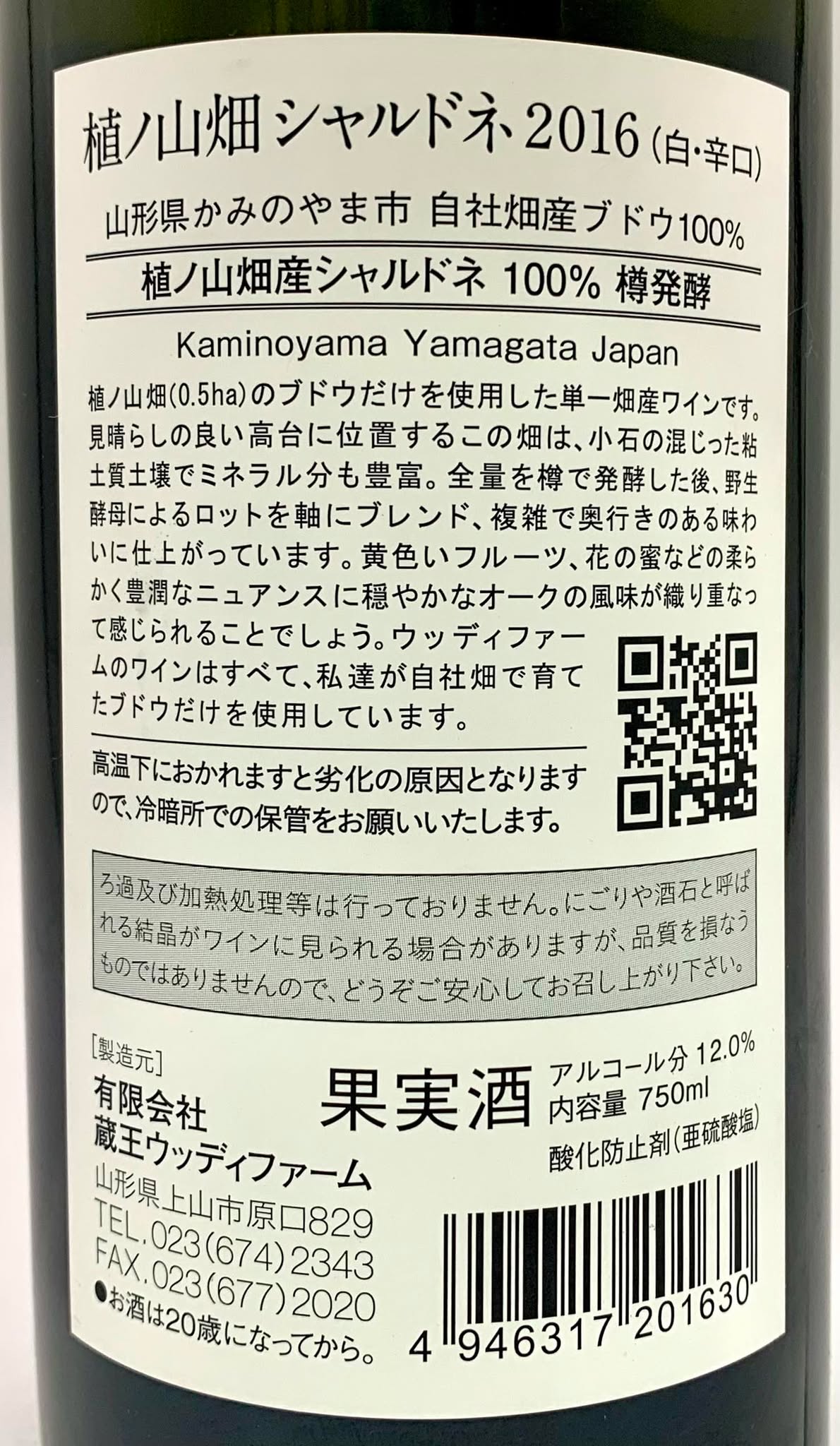 ウッディファーム 植ノ山シャルドネ 2016 《白》