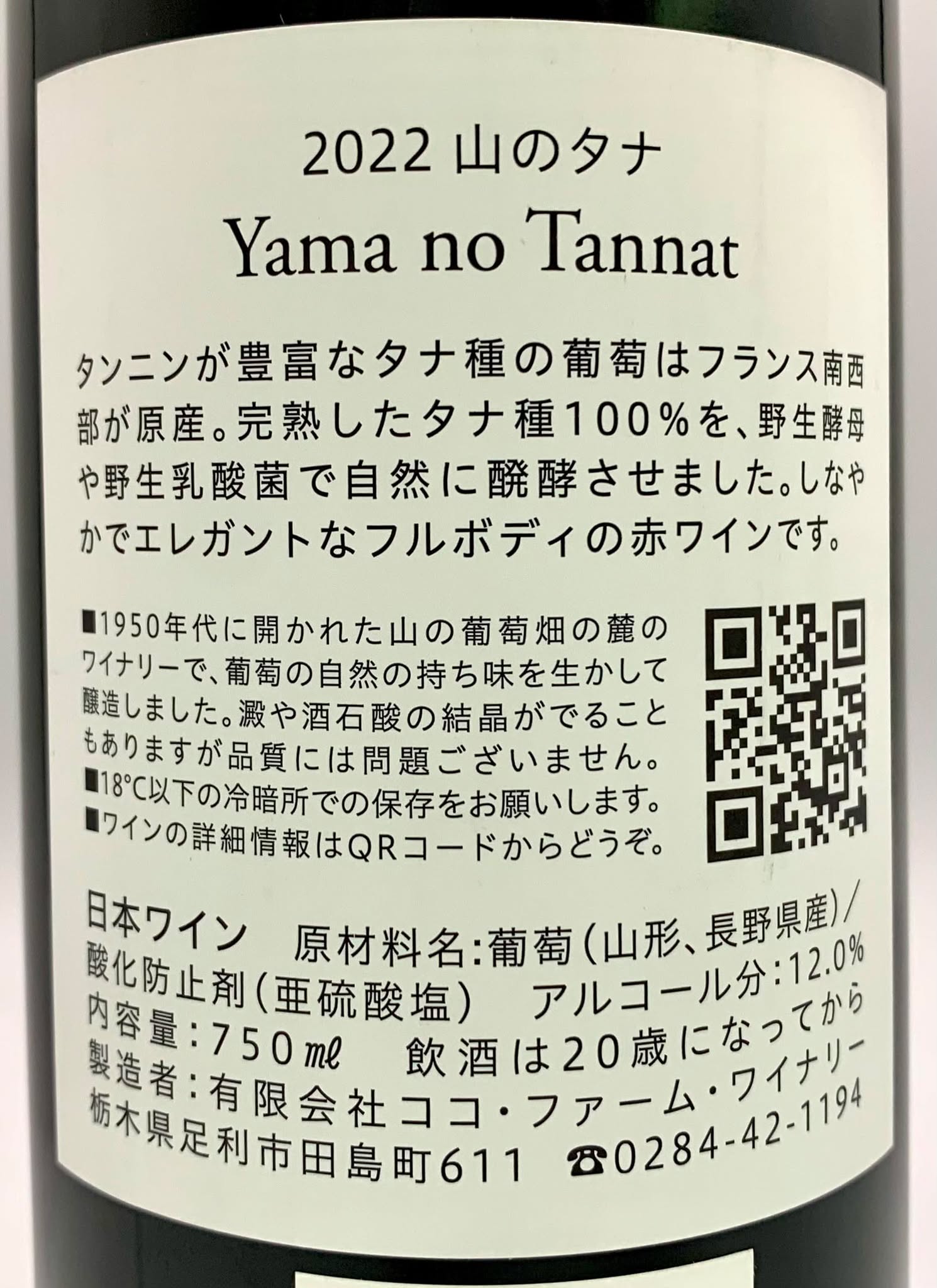 2022年も日本のタナの個性がよく表現され、こんな赤ワインに恵まれたことに感謝しています。