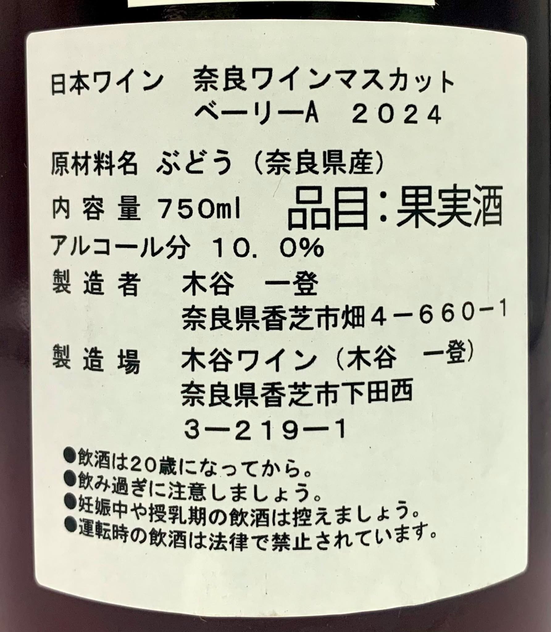 木谷ワイン 奈良ワインベーリーA 2024 [02774398]