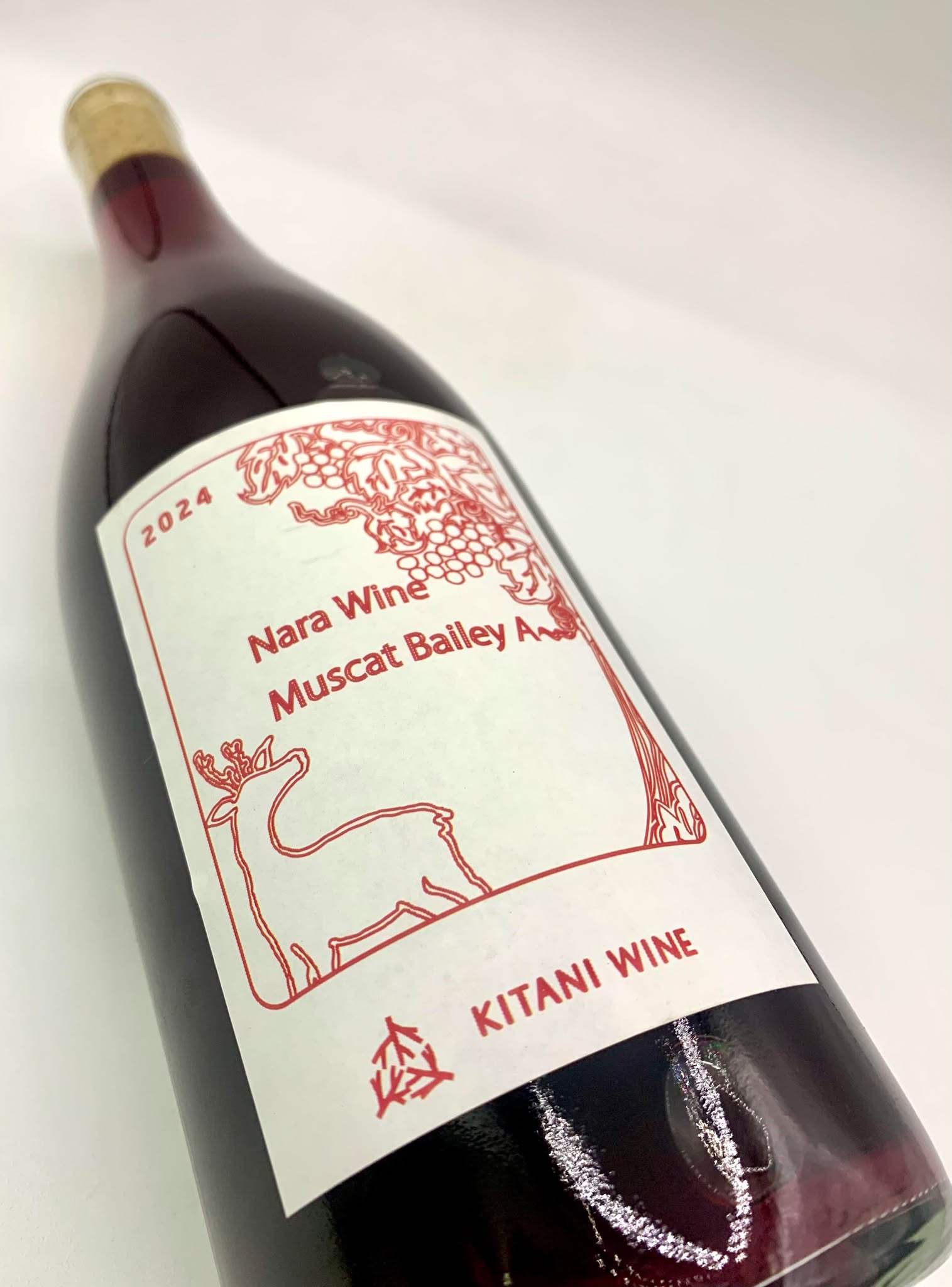 赤ワイン、750ml、樹脂製コルク栓(キャップシール無)、9.8alc、奈良県生駒郡平群町産マスカットベーリーA、自然発酵、補糖なし、亜硫酸添加なし