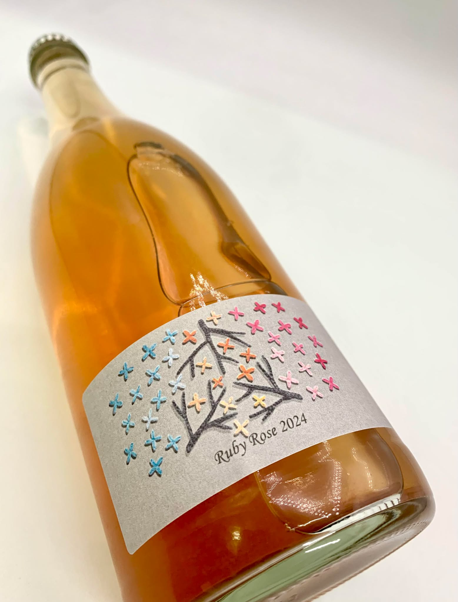 ロゼスパークリング、750ml、王冠栓、10.6alc、大阪府羽曳野市産ブラックビート、ピオーネ、ゴルビー、マスカットベーリーA、デラウェア、自然発酵、補糖あり、亜硫酸添加なし