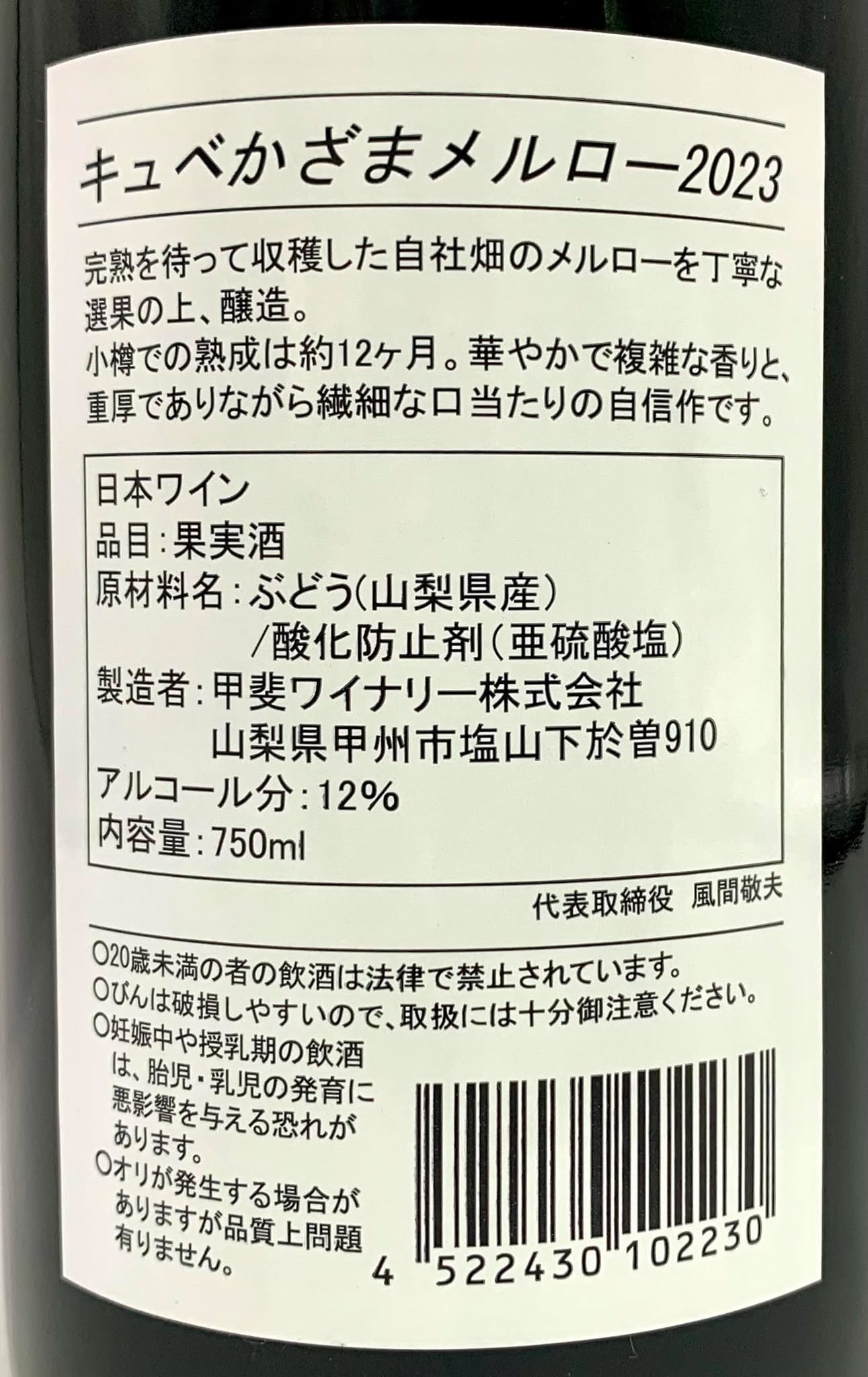 甲斐ワイナリー キュベかざまメルロー 2023 《赤》 [4522430102230]