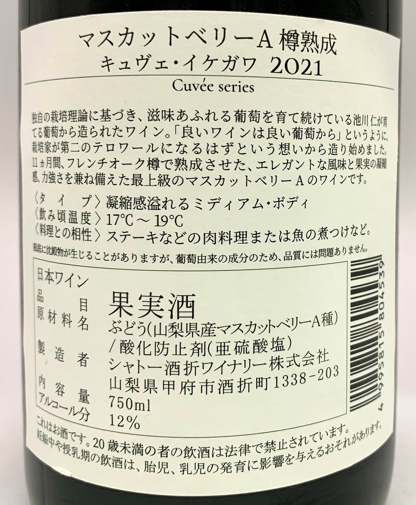 シャトー酒折ワイナリー マスカットベリーA 樽熟成 キュヴェ・イケガワ 2021 《赤》 [4995815804539]