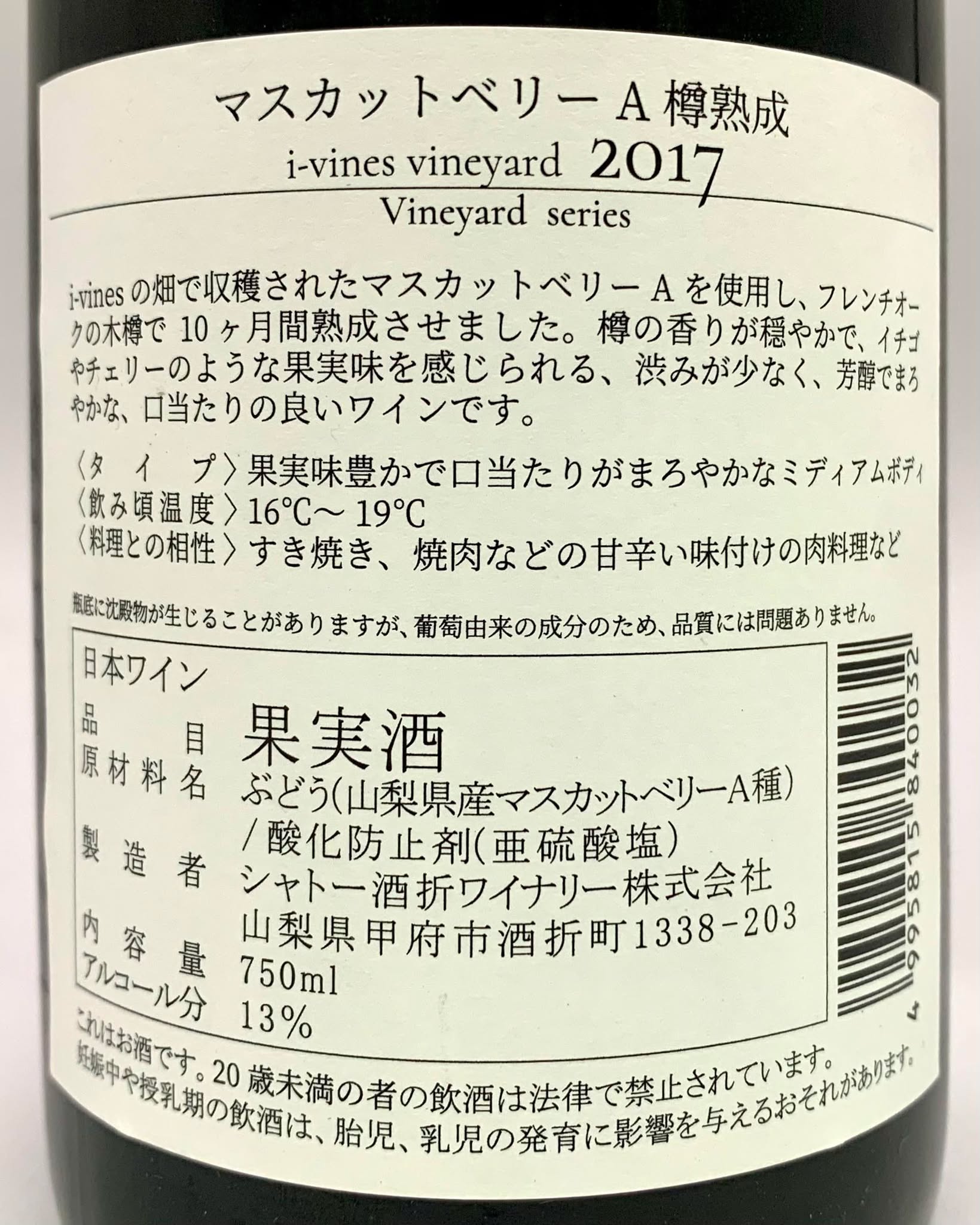 シャトー酒折ワイナリー マスカットベリーA アイヴァインズヴィンヤード 2017 《赤》
