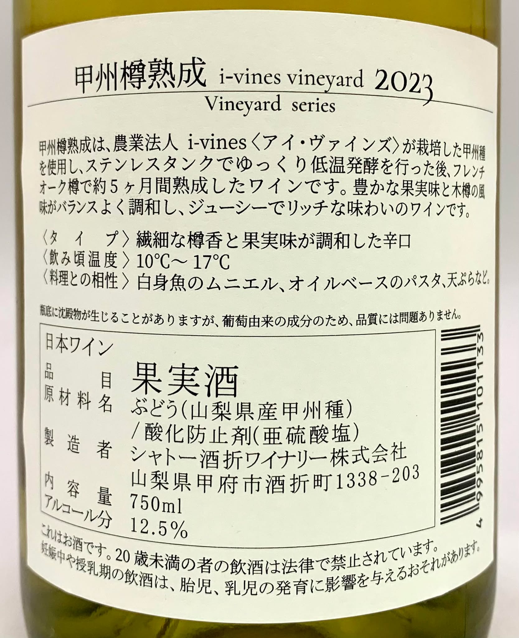 シャトー酒折ワイナリー 甲州樽熟成アイヴァインズヴィンヤード 2023 《白》