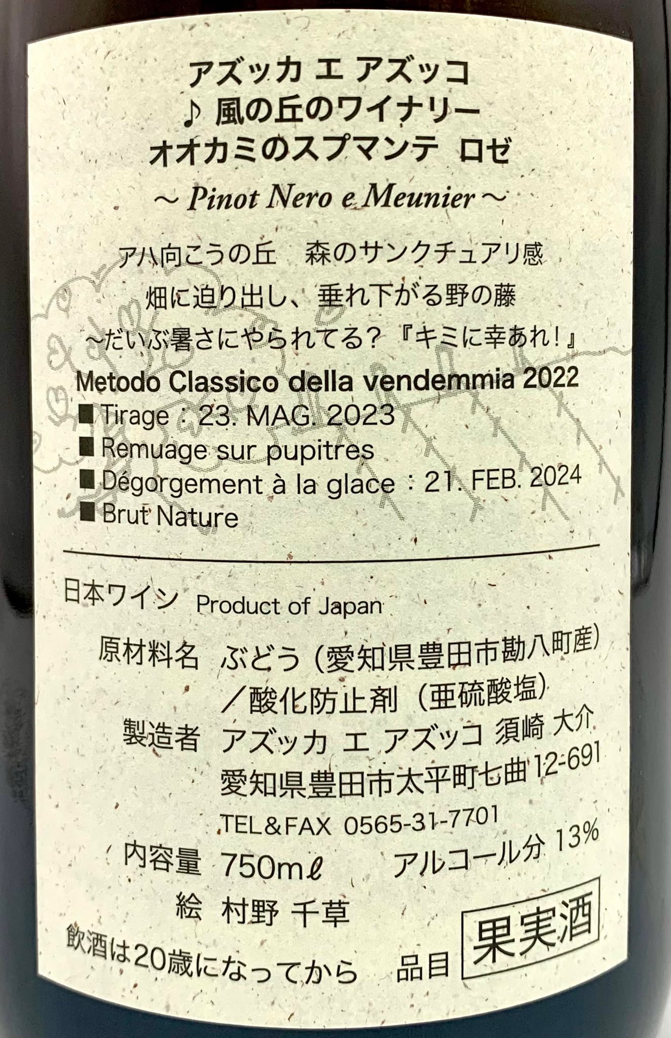 アズッカ エ アズッコ オオカミのスプマンテ ロゼ 2022 《泡・ロゼ》