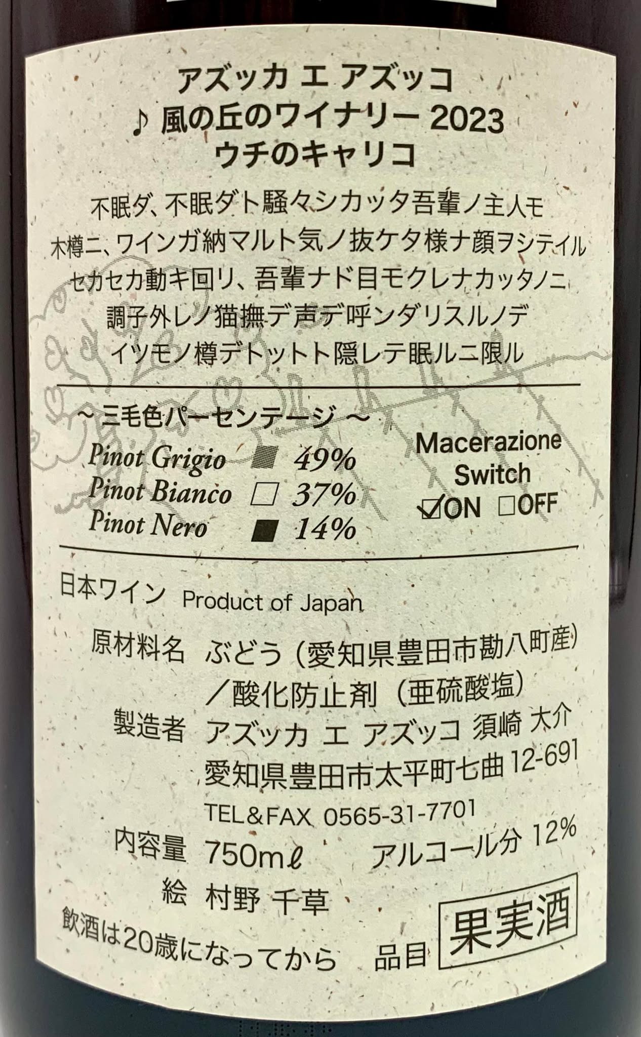 良熟グリージョ、ビアンコ、ネーロの全房醸し