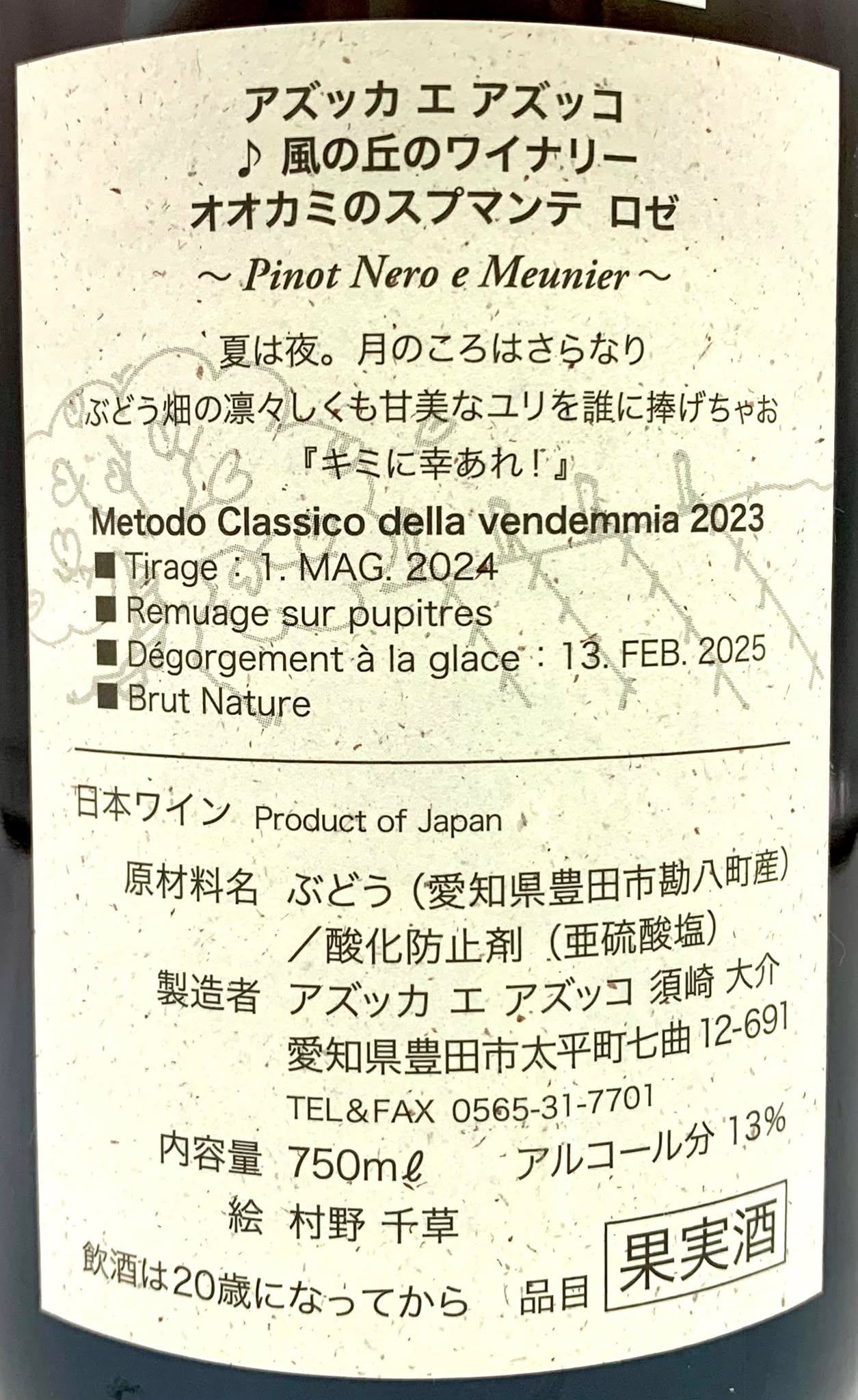 アズッカエアズッコ オオカミのスプマンテ ロゼ 2023 《泡・ロゼ》