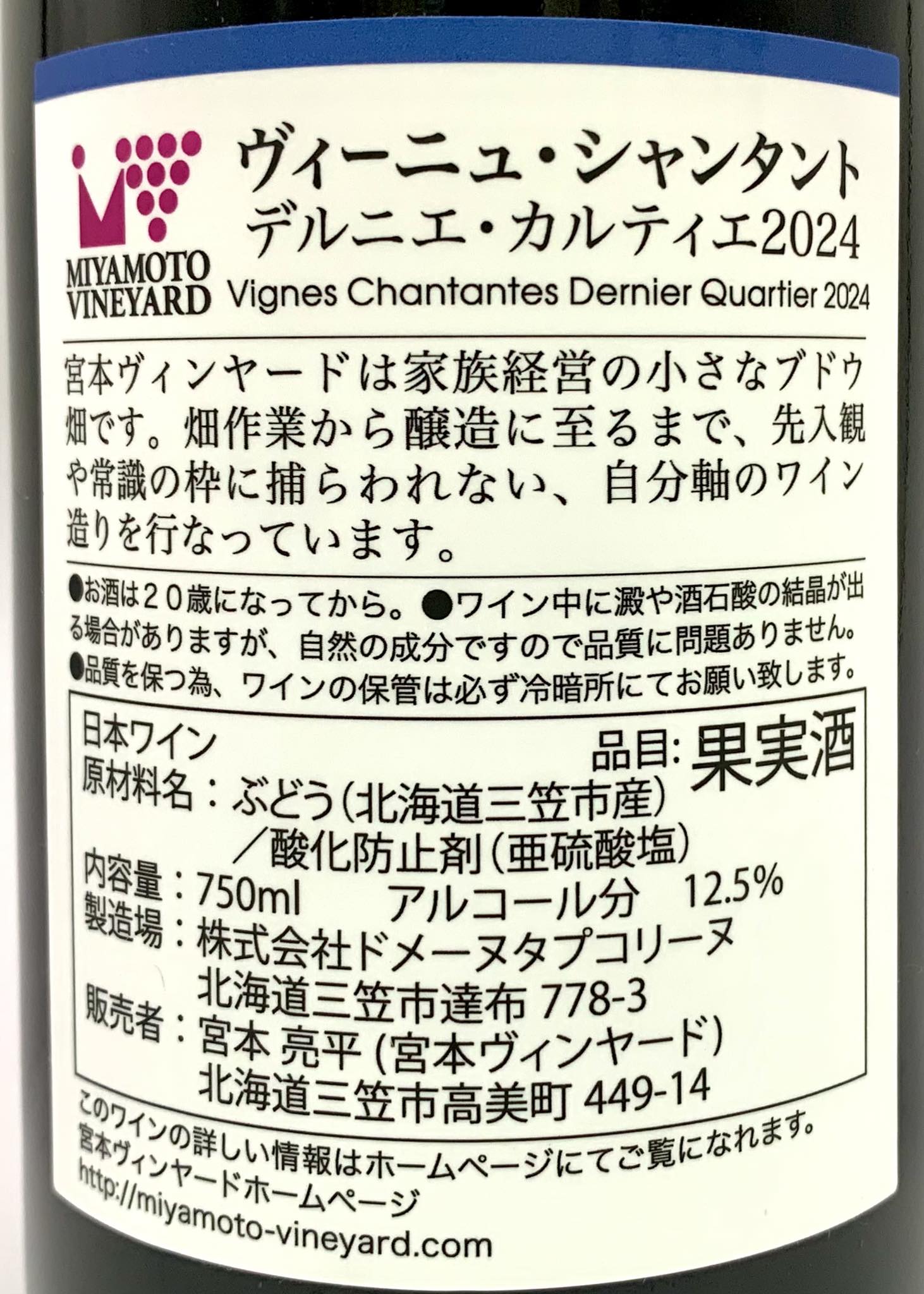 宮本ヴィンヤード ヴィーニュ・シャンタント デルニエ・カルティエ 2024 《赤》 [02775197]