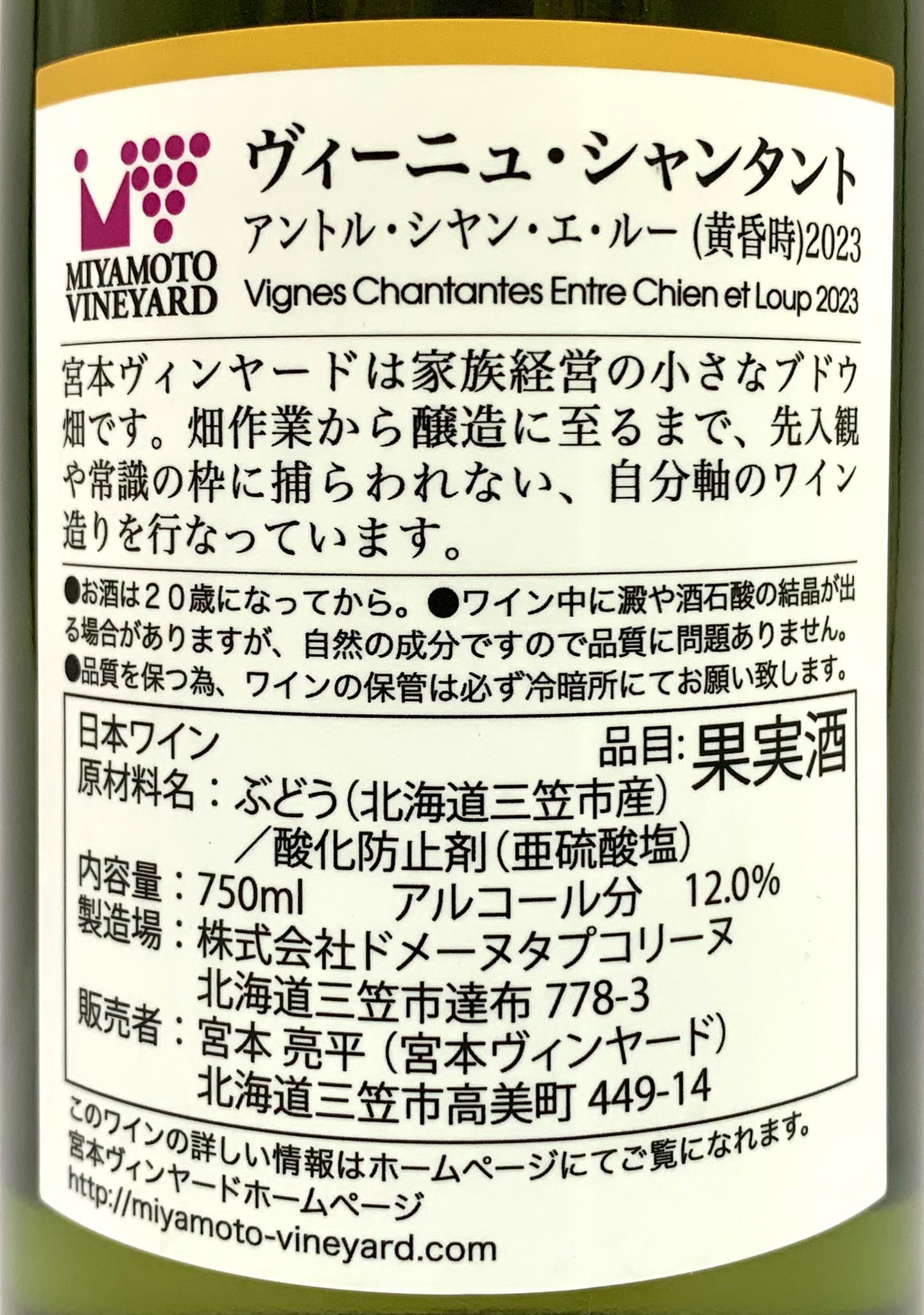 宮本ヴィンヤード ヴィーニュ・シャンタント アントル・シヤン・エ・ルー 2023 《白》